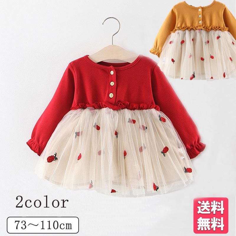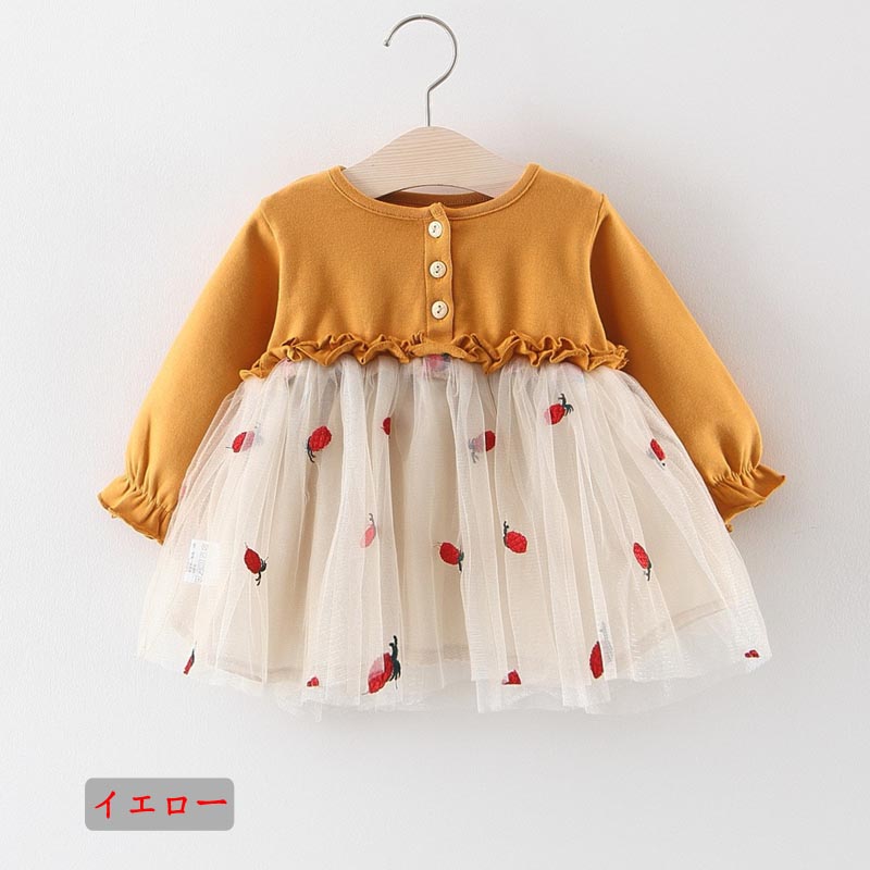 ベビーワンピース 長袖 パイナップル柄 ベビー ベビー服 ファッション ベビードレス セレモニードレス 豊富な品揃え レッド イエロー 73 80 90 100 110