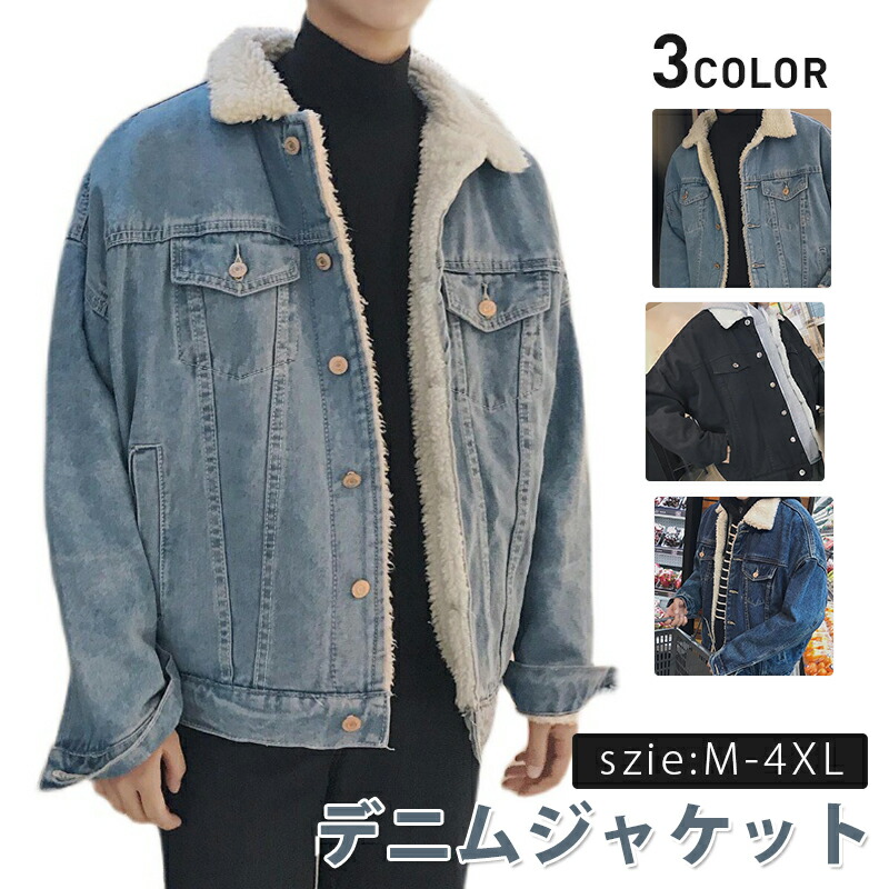 デニムジャケット メンズ 裏起毛 もこ ブラック ライトブルー ブルー M L XL 2XL 3XL