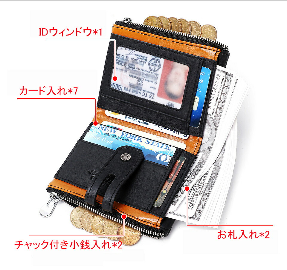 財布 メンズ 二つ折り カード7枚収納 財布 ケース メンズ財布 続々入荷中 ブラック ブラウン オレンジ