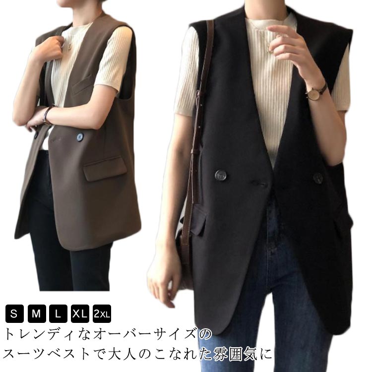 ロングベスト ロング ジレ レディース トップス ベスト 豊富 ブラック ブラウン S M L XL 2XL