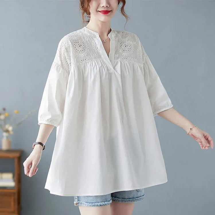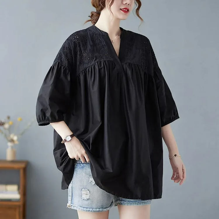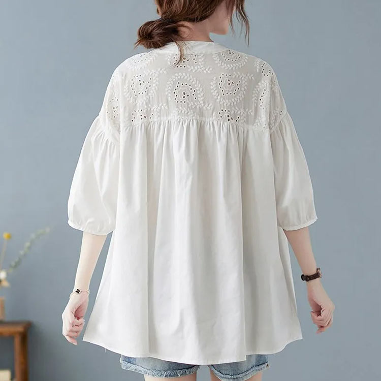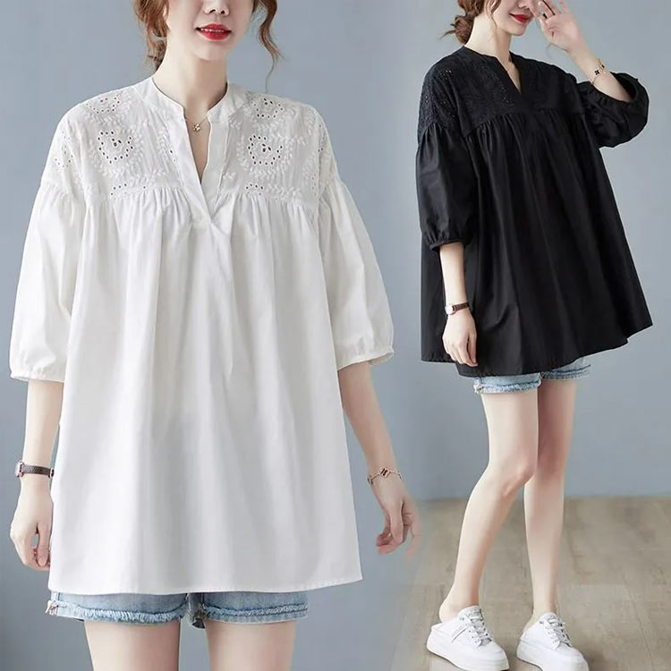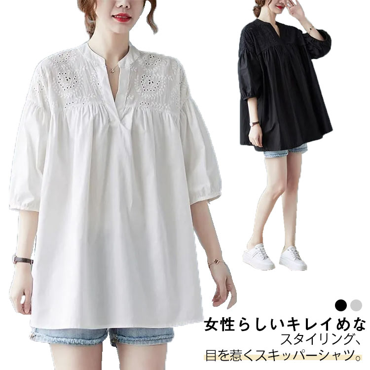 スキッパーシャツ 花柄モチーフ バルー レディースファッション 新登場! ブラック ホワイト