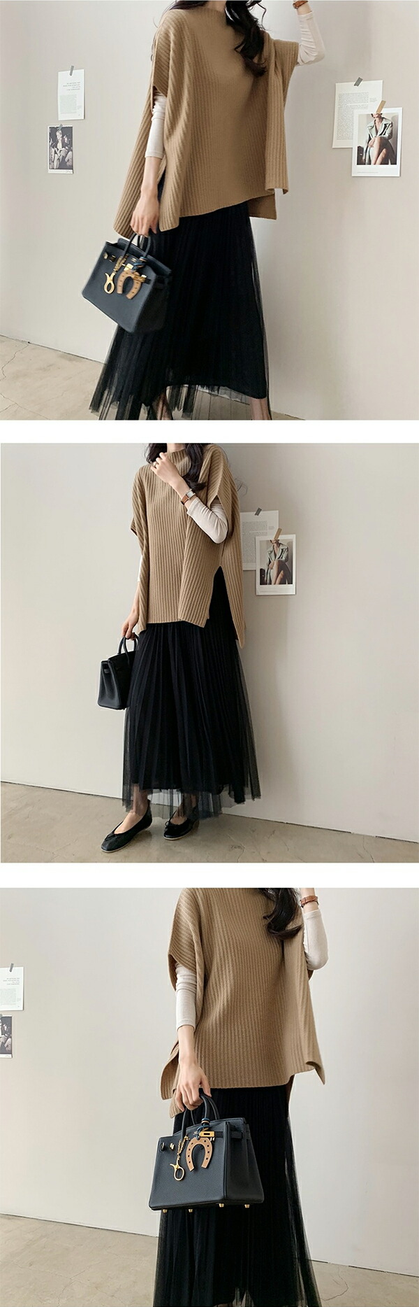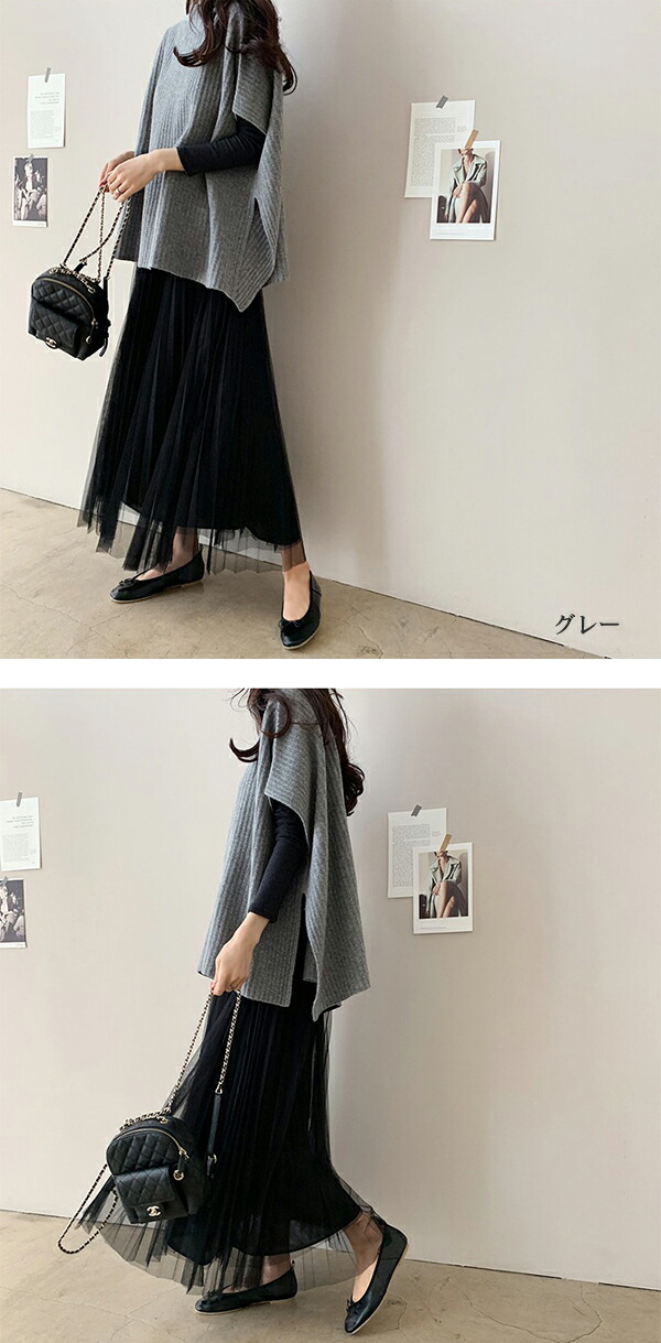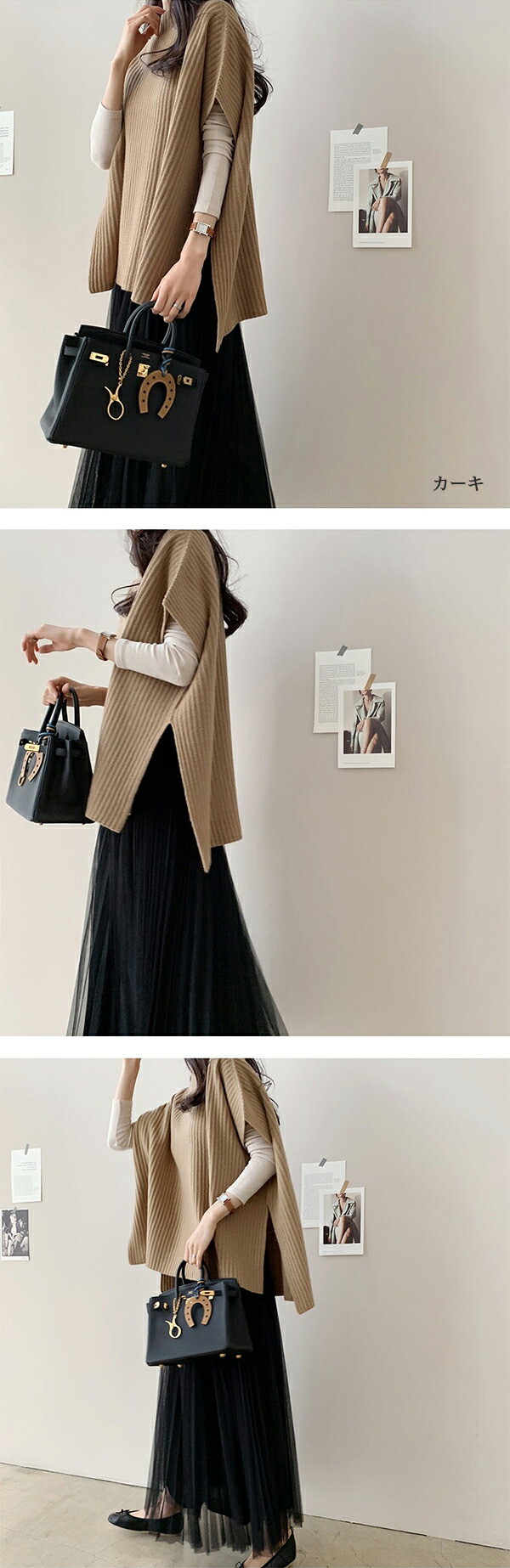 ポンチョ ニット ベスト サイド スリ レディースファッション 豊富 グレー カーキ