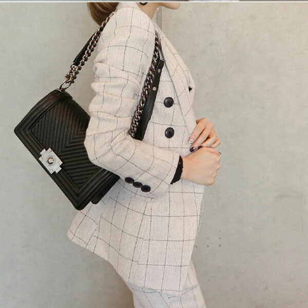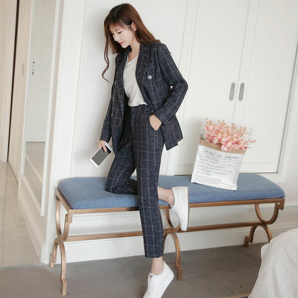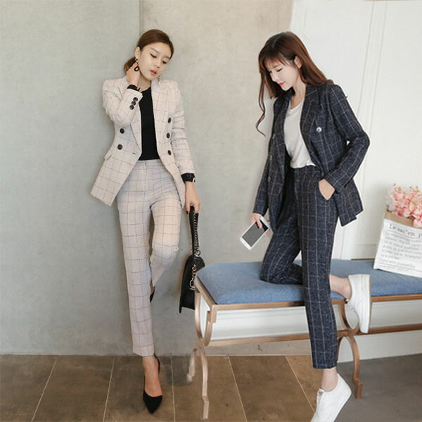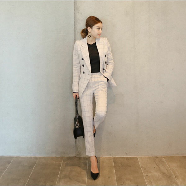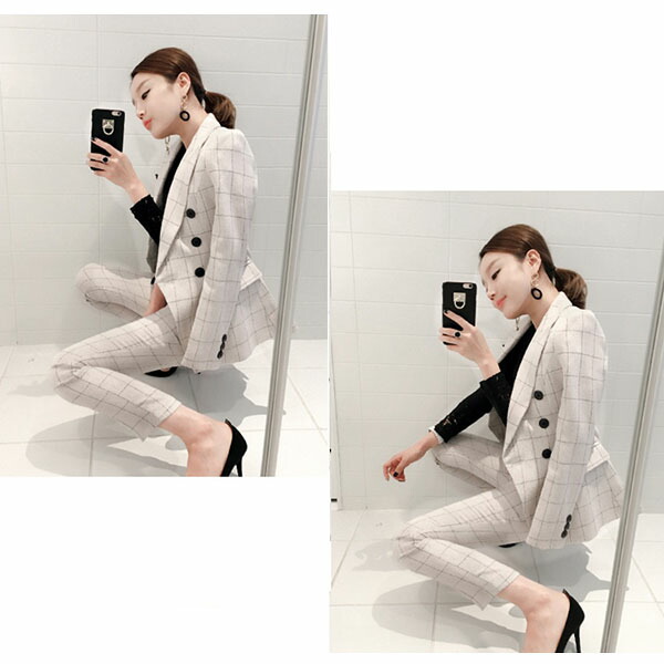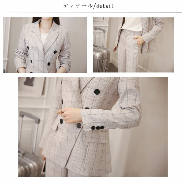 チェック柄スーツ セットアップ レディ スーツ セットアップ パンツスーツ 通販 オフホワイト ネイビー S M L XL