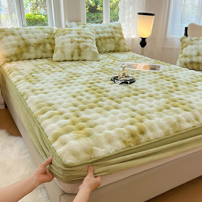 ボックスシーツ 冬用 もこもこ ふわふ インテリア 寝具 収納 超目玉商品 純色 タイダイ柄 ホワイト コーヒー グレー ピンク グリーン ブラウン