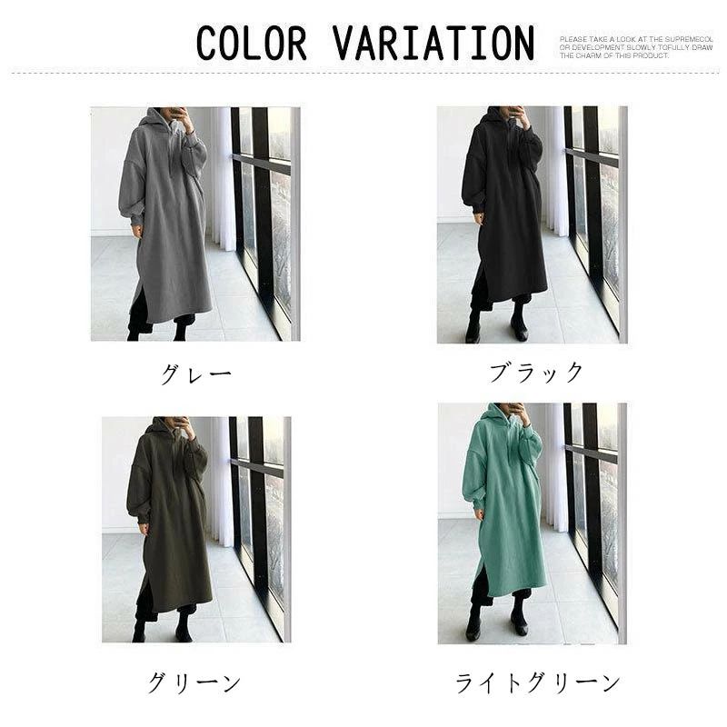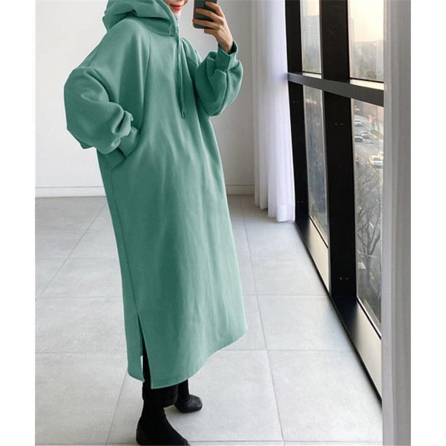 パーカー レディース ワンピース 秋冬 レディースファッション 新作 グレー ブラック グリーン ライトグリーン S M L XL 2XL 3XL 4XL 5XL