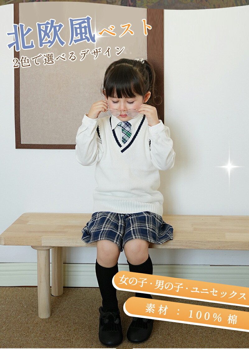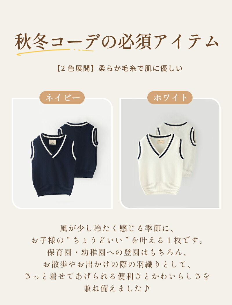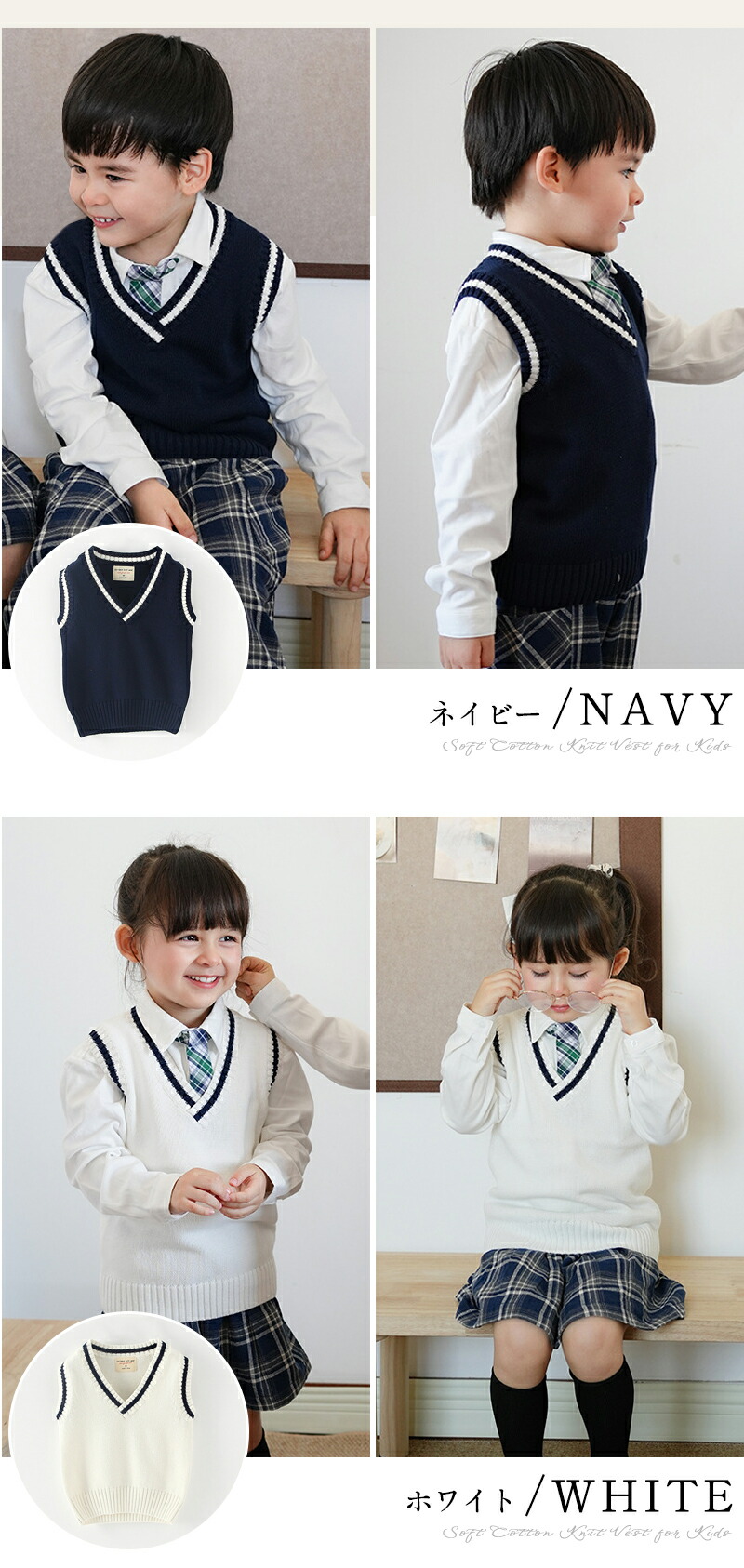 子供服 スクールベスト スクールセータ キッズ トップス ベスト 続々登場 ホワイト ネイビー 100cm 110cm 120cm 130cm 140cm