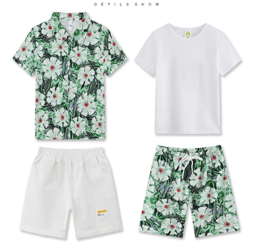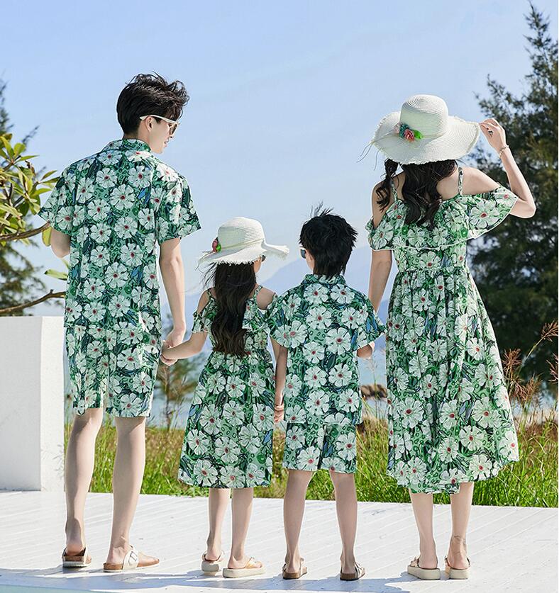 親子ペア 衣装 カップル 夏服 海旅行 ドレス シャツ+緑半ズボン シャツ+ベージュ半ズボン 白Tシャツ+緑半ズボン S M L XL XXL 3XL 4XL 90 100 110 120 130 140 150 160
