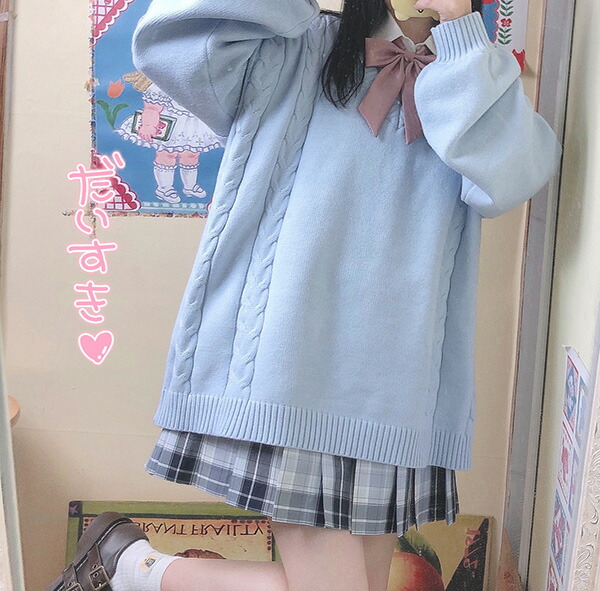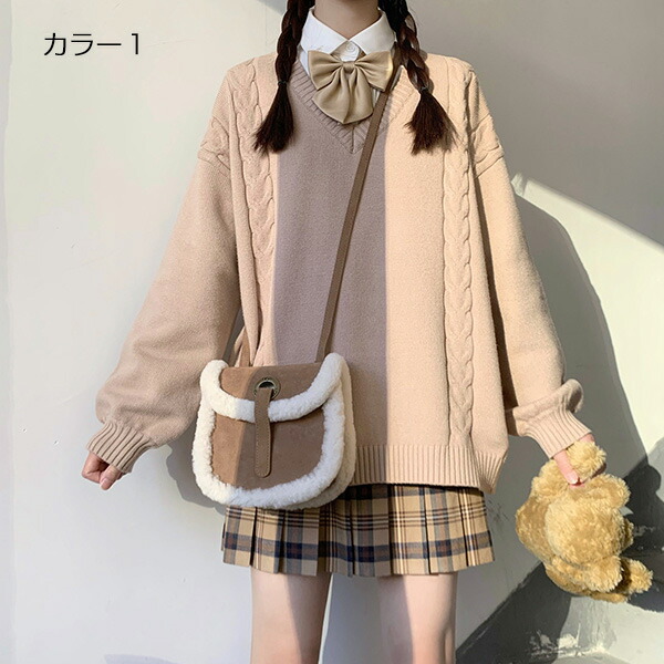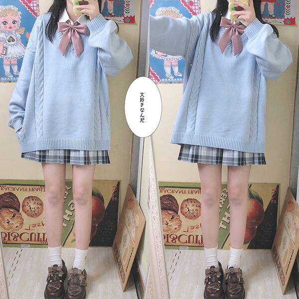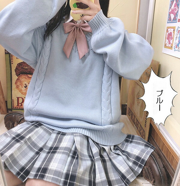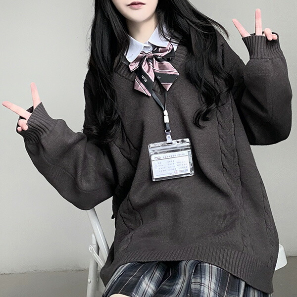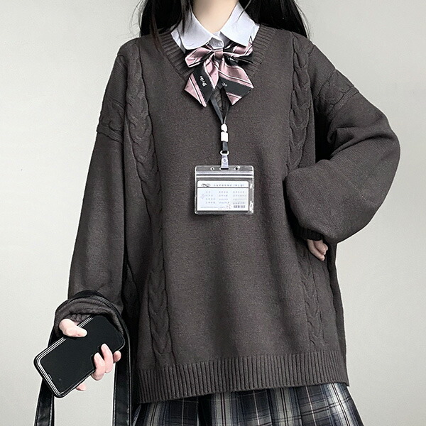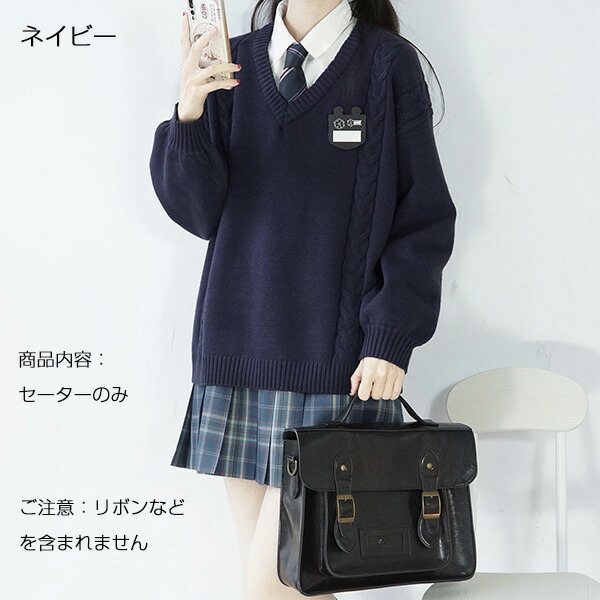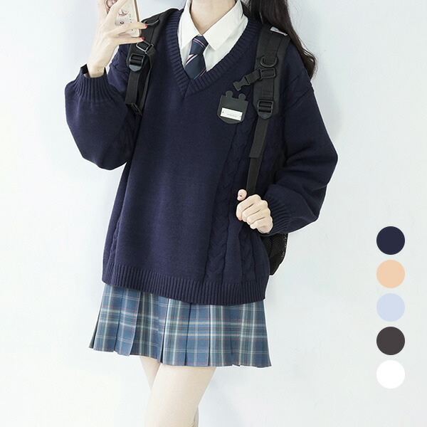 Vネックセーター レディース スクール レディースファッション 早い者勝ち ダークグレー ホワイト ネイビー ブルー カラー1