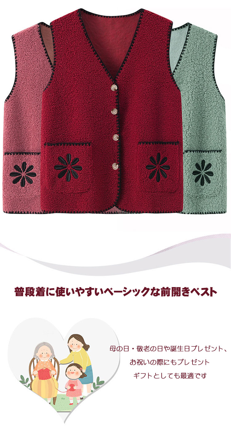 前開きベスト レディース 60代 70 トップス ベスト 豊富な品揃え ワイン ライトグリーン ピンク カーキ XL 2XL 3XL 4XL