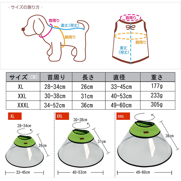 エリザベスカラー 透明 中型犬 大型犬 犬用品 介護用品 エリザベスカラー 早い者勝ち XL 2XL 3XL オレンジ グリーン