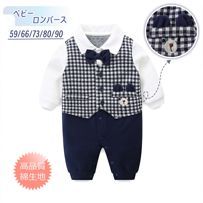 蝶ネクタイ くまの耳 ベビー服 新生児 キッズ ベビー マタニティ 人気 59/身長目安50-59cm 66/身長目安58-66cm 73/身長目安65-73cm 80/身長目安72-80cm 90/身長目安78-90cm