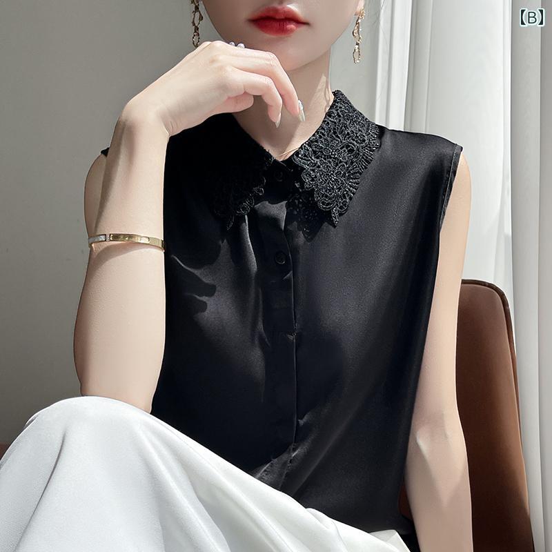 ノースリーブ ブラウス フレンチ シャ トップス シャツ ブラウス 新登場! A:白 B:黒 M L XL 2XL