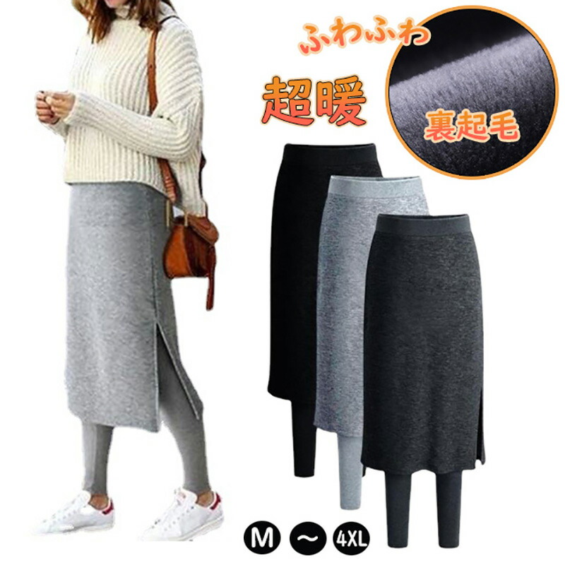 スカート付き レギンス 裏起毛 サイド ボトムス スカート 特集 M L XL 2XL 3XL 4XL ブラック(普通) グレー(普通) ダークグレー(普通) ブラック(裏起毛) グレー(裏起毛) ダークグレー(裏起毛)