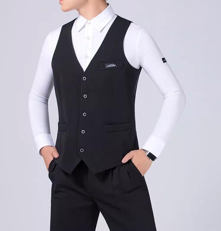 社交ダンス 衣装 メンズ 競技 パフォーマンス ベスト モダン ワルツ 練習着 かっこいい トップス シンプル 発表会 スリム タイト 大きいサイズ 黒