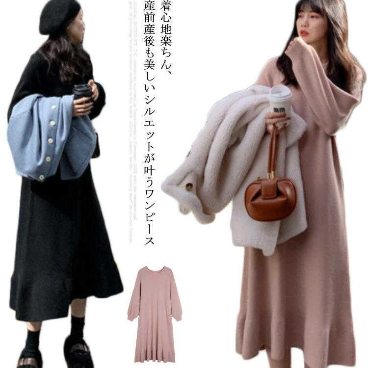 マタニティ ワンピース 秋冬 フレア キッズ ベビー マタニティ 特集 ピンク ブラック M L XL XXL XXXL