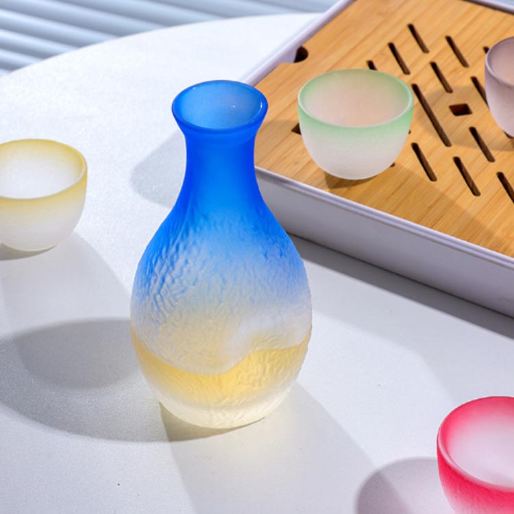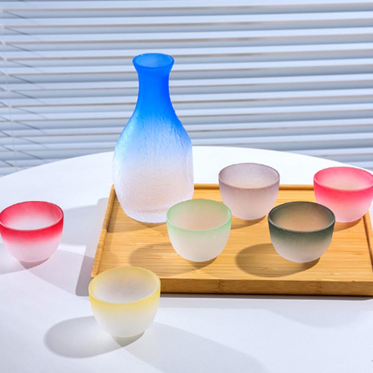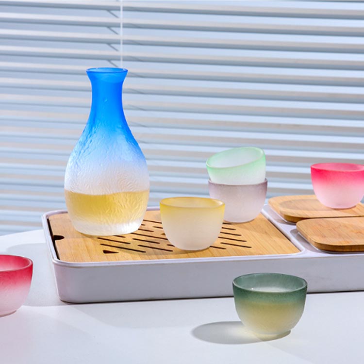 酒器セット 猪口 ガラス製 盃3個 食 徳利*1(藍) 盃*3(藍+粉+黄) 盃*3(青+赤+緑)