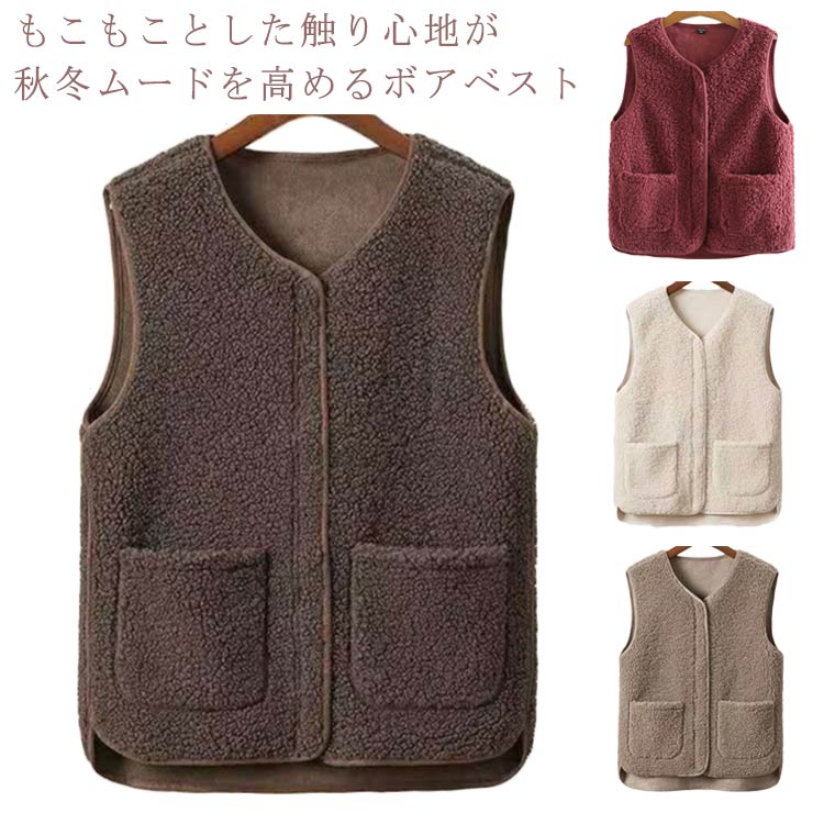 ボアベスト 裏起毛 ベスト 無地 シン レディースファッション 早い者勝ち コーヒー ベージュ ホワイト ピンク 3XL 4XL 5XL 6XL
