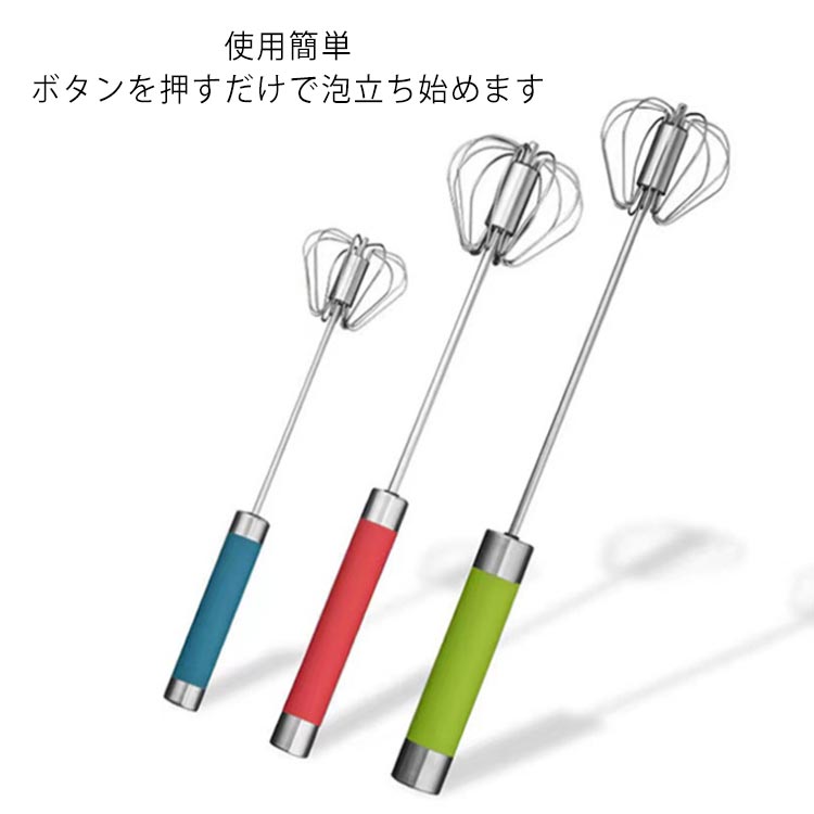 半自動 泡立て 押すと回転 泡立て器 調理 製菓道具 調理器具 泡だて器 超目玉商品 グリーン レッド ブルー S M L