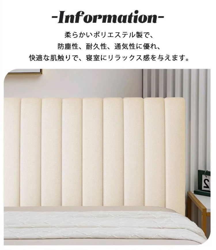 ヘッドボード 保護カバー ヘッドボード ホワイト ライトグレー ダークグレー カーキ 150x65cm 180x65cm 200x65cm