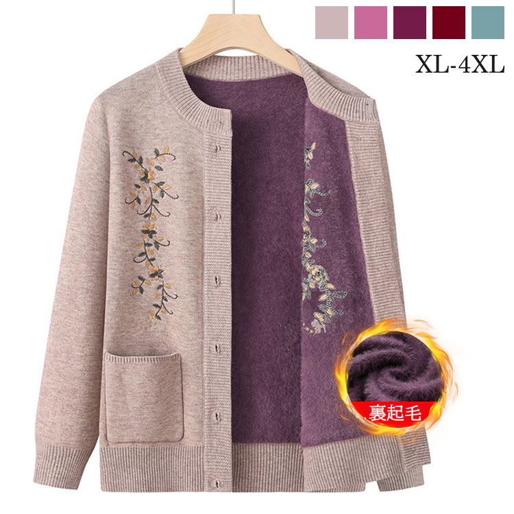 おばあちゃん 裏起毛 ニットカーディガ トップス カーディガン ボレロ 早い者勝ち キャメル ピンク パープル ワインレッド グリーン XL 2XL 3XL 4XL