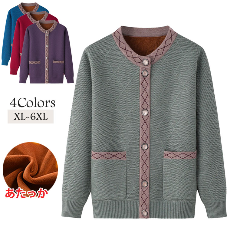 ニットカーディガン 暖かい 裏起毛 あ レディースファッション 早い者勝ち グリーン ブルー パープル ワインレッド XL 2XL 3XL 4XL 5XL