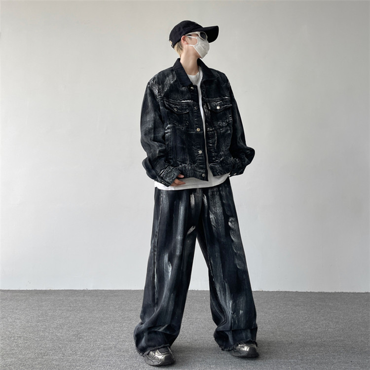 k-pop 衣装 大人 デニム ダンス ヒップホップ セットアップ ジャケット デニムパンツ 黒 パンツスーツ 中学生 高校生 韓国 男女兼用 お揃い jazz ダンスウ ペアコーデ