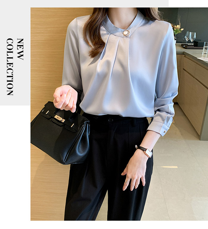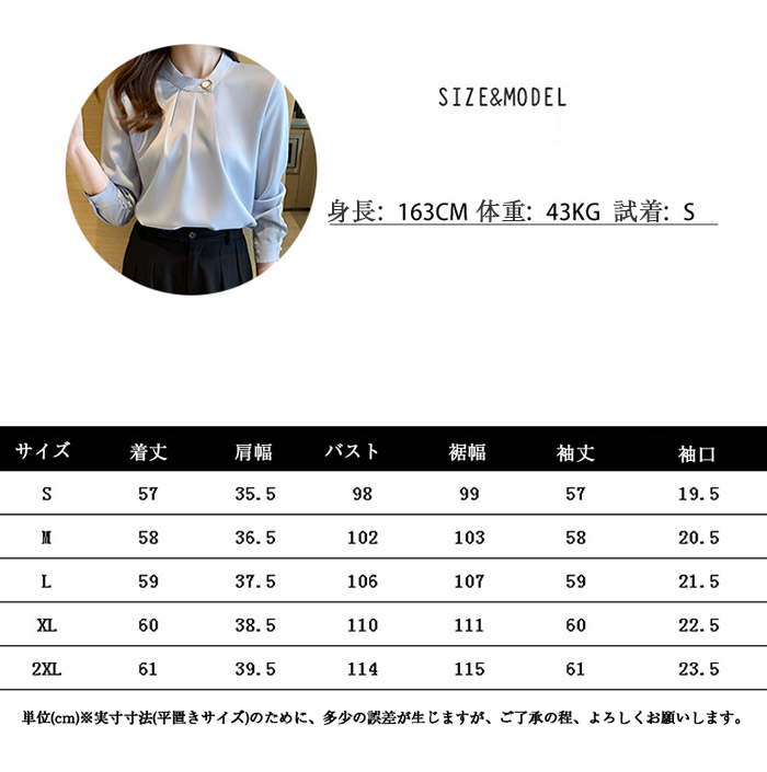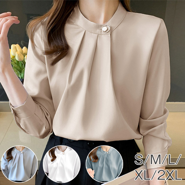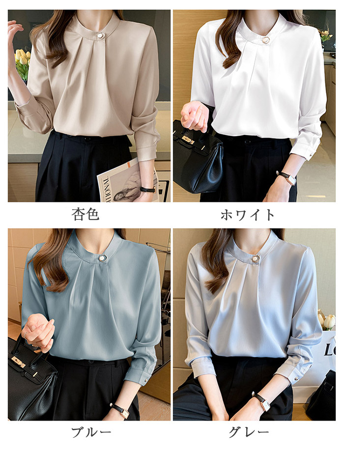 ブラウス 長袖 レディース tシャツ トップス シャツ ブラウス 続々登場 ブルー ホワイト 杏色 グレー S M L XL 2XL