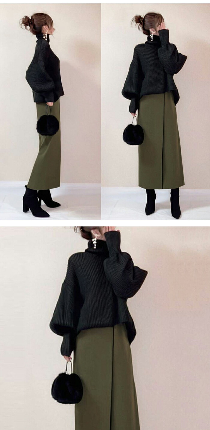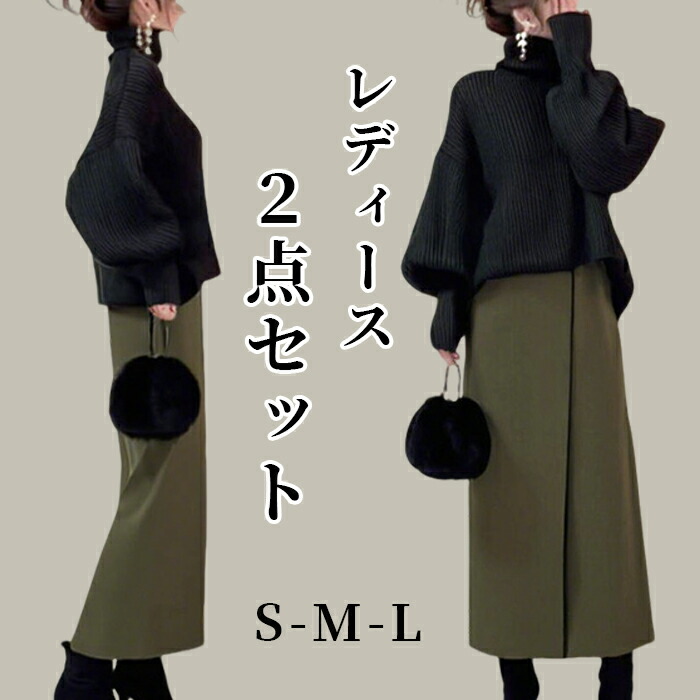レディース 2点セット ハイネックセー スーツ セットアップ スカートスーツ 早い者勝ち S M L