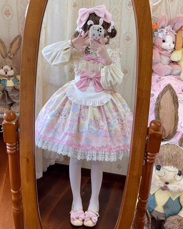 LOLITA ロリータ jsk ワンピ レディースファッション 新登場! S M L JSK+エプロン JSK+エプロン+パニエ