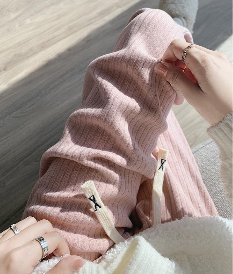 リブパンツ秋冬物レディースパンツ 無地 レディースファッション 超目玉商品 ベージュ ピンク カーキ グレー ブラック ベージュ裹起毛 ピンク裹起毛 グレー裹起毛 ブラック裹起毛 カーキ裹起毛 S M L XL