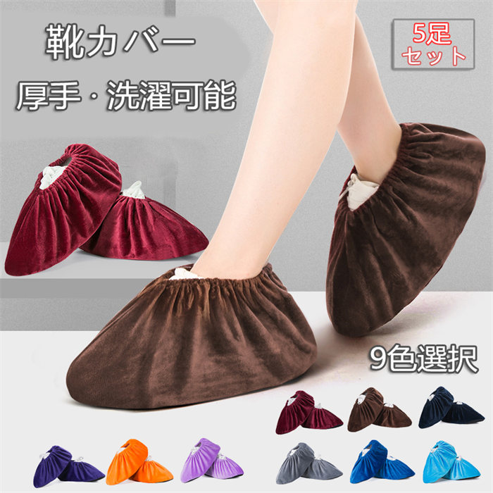 靴カバー 布 5足セット 厚手 ルーム 日用品雑貨 文房具 手芸 人気 レッド コーヒー ネイビー グレー ダークブルー ライトブルー オレンジ ダークパープル ライトパープル 大人用 (5足セット) 子供用(5足セット)