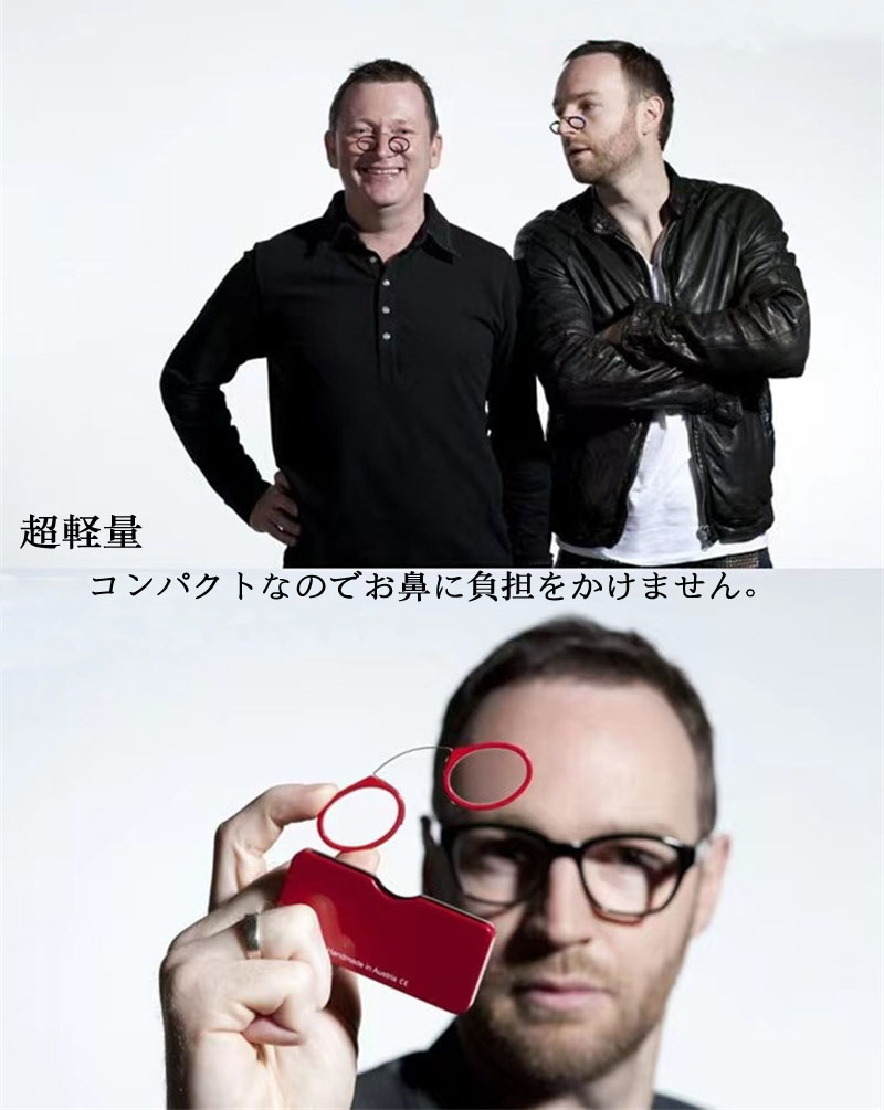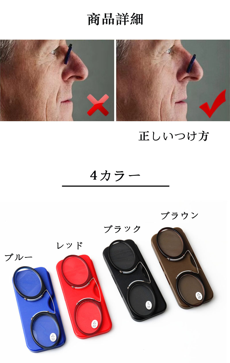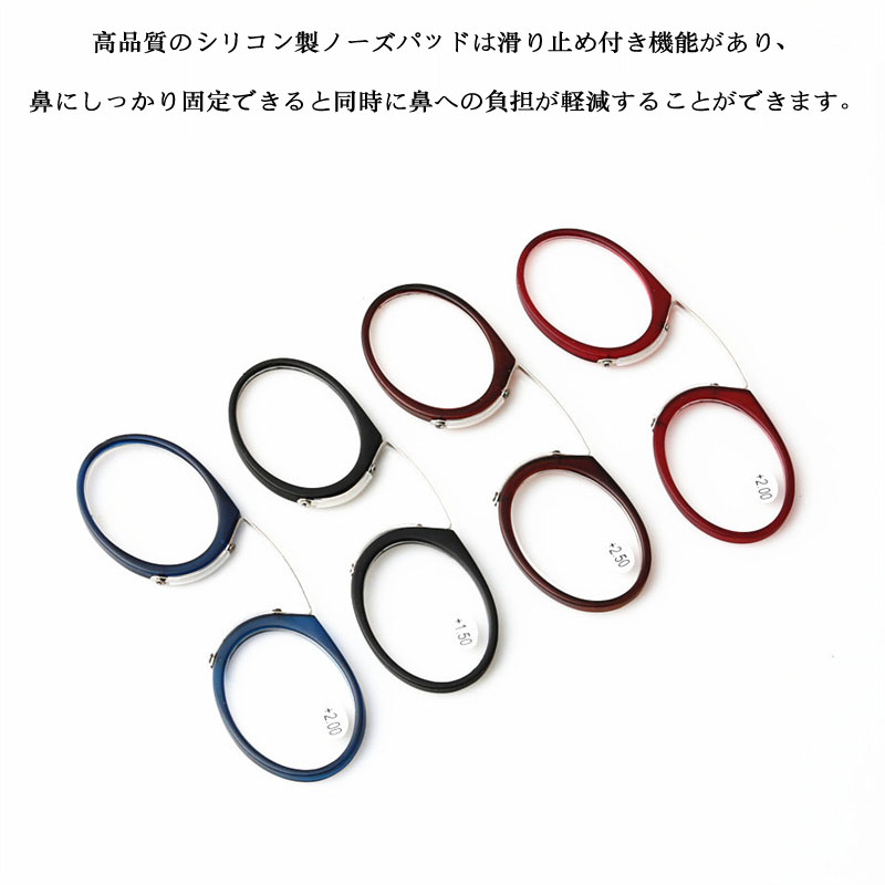 老眼鏡 鼻掛け ノーズクリップ 鼻メガ バッグ 小物 ブランド雑貨 人気 ブラック レッド ブルー ブラウン +1.0 +1.5 +2.0 +2.5 +3.0 +3.5