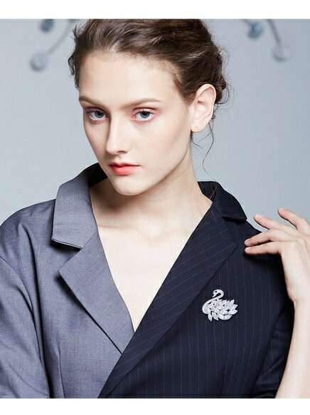 スワロフスキー CZダイアモンド スワン ブローチ クリスタルカット タイプ アクセサリー レディースジュエリー ジュエリー
