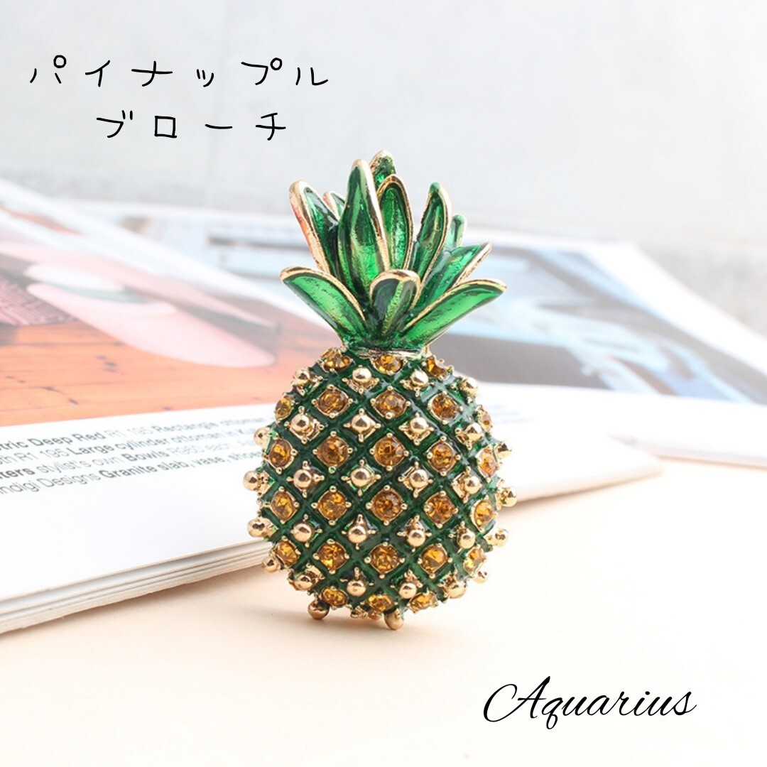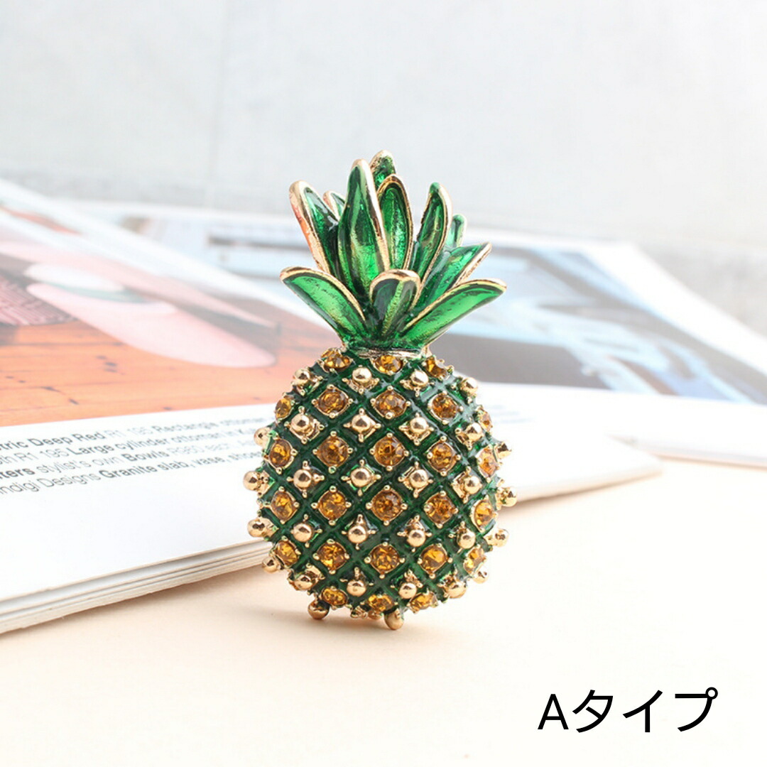 スワロフスキー と 七宝焼き の パイナップル ブローチ アクセサリー レディースジュエリー 2カラージュエリー