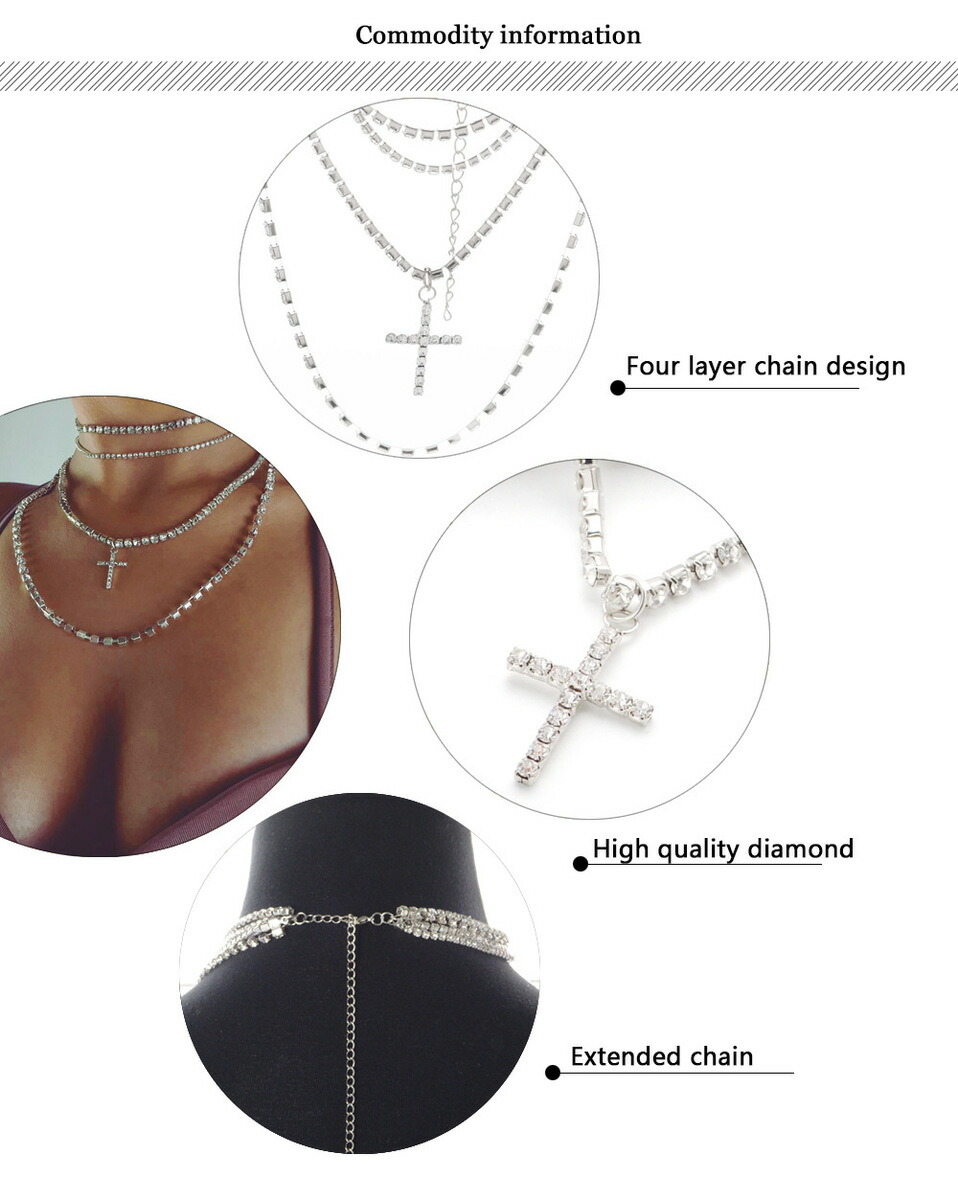 キラキラ ラインストーン 重ね付け MADONNA 風 十字架 ネックレス アクセサリー レディースジュエリー チョーカー ジュエリー