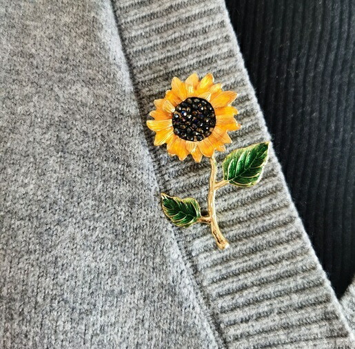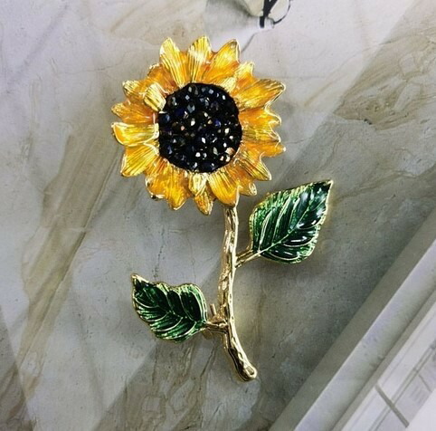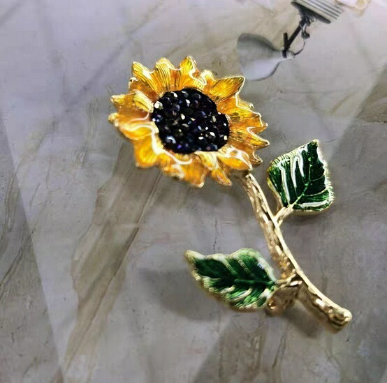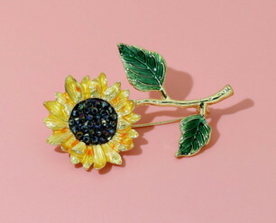スワロフスキー と 七宝焼きの ひまわり ブローチジュエリー レディースジュエリー ブローチ アクセサリー