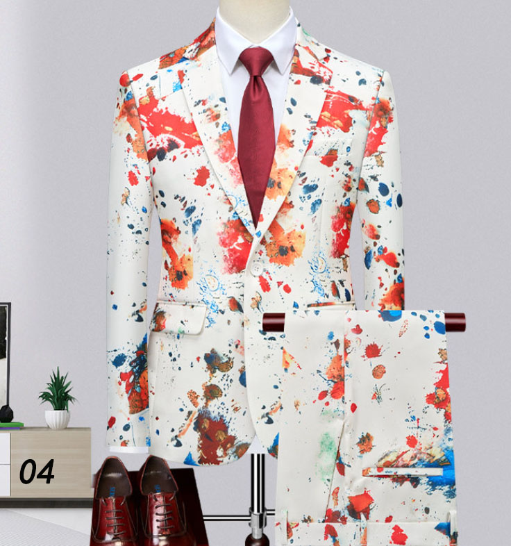 ステージ衣裳 メンズ 花柄 ジャケット 総柄 長袖 スーツ テーラードジャケット スリム 舞台 ダンス 衣装 コスプレスーツ タキシード 撮影 演出 衣裳 水彩 派手系 結婚式 パ 抽象画