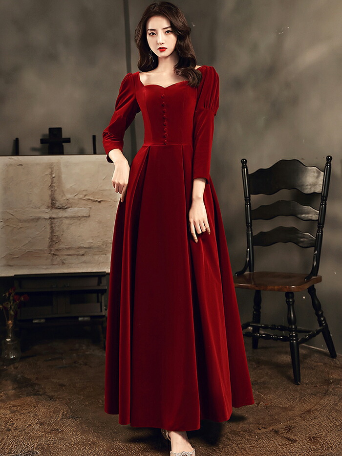 ロングドレス 演奏会 長袖 パーティードレス カラードレス 赤 演奏会用ドレス 結婚式 イブニングドレス 二次会 カクテルドレス 花嫁 フォーマルドレス エンパイア お呼ばれ ワンピー Aラインドレス