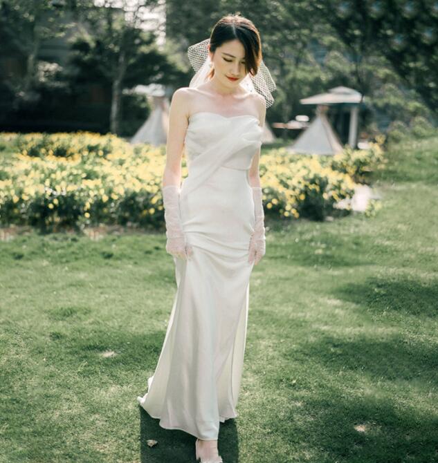 フォーマルドレス ロング ウェディングドレス マーメイド 花嫁 ドレス シンプル 美シルエット パーティードレス 二次会ドレス スレンダーライン エレガント 結婚式 ブライダル 海外挙式 演奏 披露宴