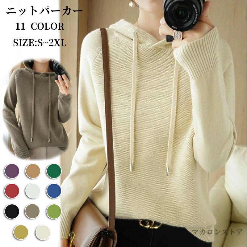 パーカー レディース 長袖 秋冬 トップス スウェット おしゃれ ニットパーカー プルオーバー 無地 春 秋 冬 シンプル フードパーカー レディースファッション 韓国風 薄手 大き カジュアル