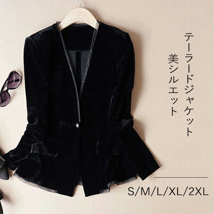 定番・セレモニー・冠婚葬祭・入学式 結婚式・卒業式 ジャケット レディース 冬 ベロア ベロアジャケット オフィス テーラード テーラードジャケット 長袖 ライトアウター