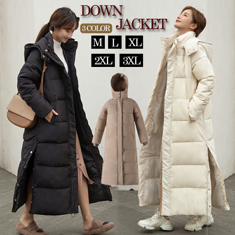 ダウンジャケット レディース ロング丈 大きいサイズ ダウンコート 膝下丈 フード付き ペンチコー 中綿コート 長袖 防寒コート キルティング おしゃれ サイドスリット はっ水加工 レ 中綿ジャケット