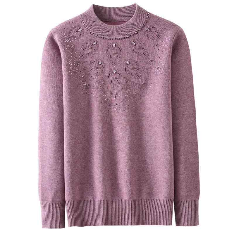 婦人服 マザーズ 秋冬 柔らかい ウール セーター ニット素材 裏起毛 フリース 防寒着 女性用 インナー ベルベット 普段着 ストーン ハーフハイネック 母の日ギフト