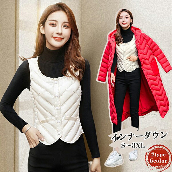 インナーダウン ライトダウン 冬用コート レディース 冬服 防寒 着痩せ ベスト チョッキ あったか 暖かい 薄手 ノースリーブ アウター ジャケット 大きいサイズ 秋冬 大人 上 ゆったり