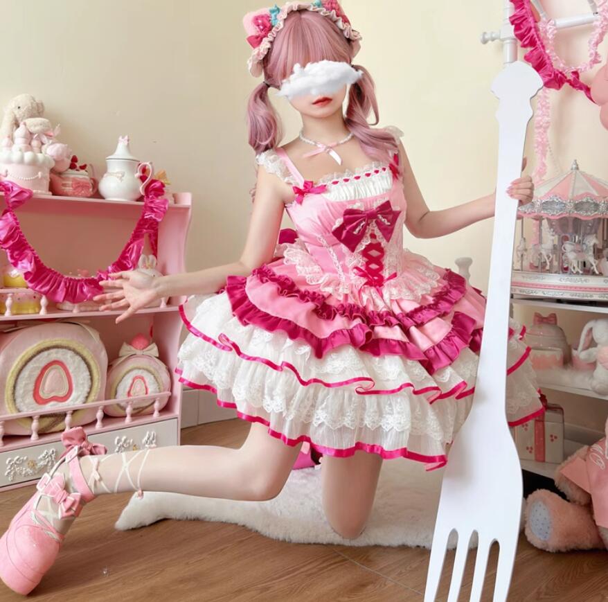 ////森系/系 ロリータ ワンピース 吊りスカートワ 洋服 ティアードスカート ウエディングドレス