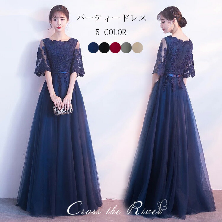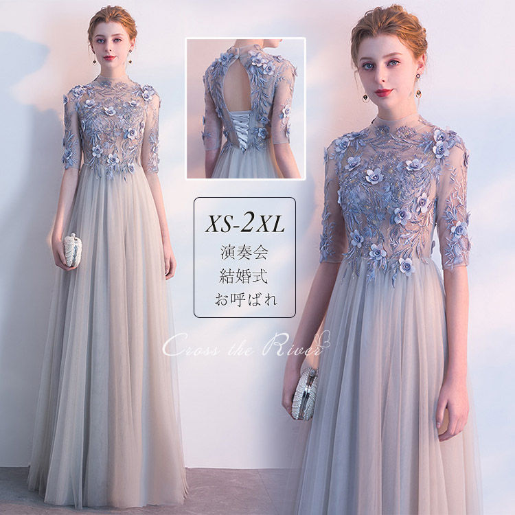 ドレス 大人 ピアノ発表会 高校生 中学生 ロングドレス 演奏会ドレス パーティードレス 韓国 イブニングドレス カクテルドレス 結婚式ドレス お呼ばれドレス 花柄レース 刺繍 中袖 マキシ丈