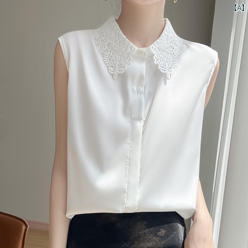 ノースリーブ ブラウス フレンチ シャツ カラー アセテート サテン レディース ゆったり 万能 デイリー ファッション カジュアル