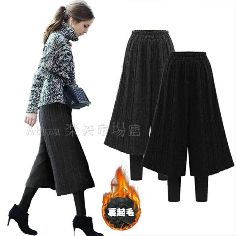 ズボン レディース ワイドパンツ付き レギンス 裏起毛 ボトムス スパッツ スカッツ 大人可愛い 秋 冬 あったか 無地 タイトスカート 体型カバー ストレッチ ミモレ丈 フレア ファッ 大きいサイズ