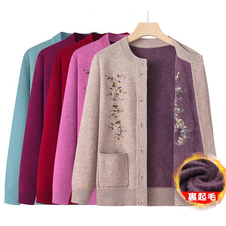 ニットカーディガン 花柄 レディース セーター 婦人服 裏ボア 柔らか もこもこ 保温性 暖かい 高齢者 ゆったり 体型カバー カジュアル ブラウス 羽織り お誕生日プレゼント 50-70代 コート