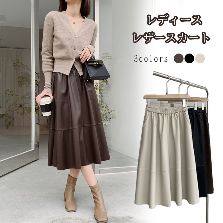 レディース フレアスカート レザー ロングスカート 女の子 PU スカート マキシ丈 大きいサイズ ハイウエスト 着痩せ Aライン 合皮 ゆったり ボトムス フォーマル オフィス 通勤 女子会 普段着